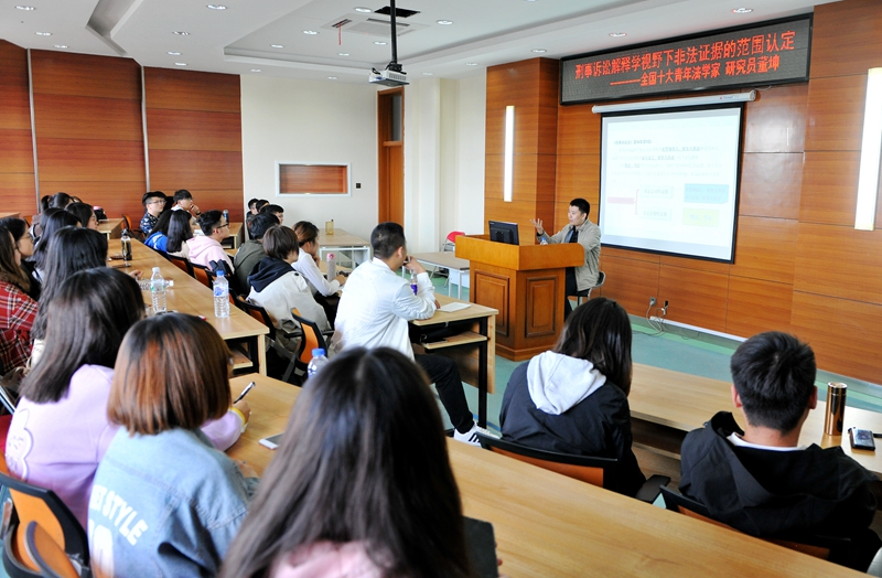 9月25日下午,全国十大杰出青年法学家、最高人民检察院理论研究所董坤研究员应国产色情 副院长仇晓光副教授邀请,做了题为“刑事诉讼解释学视野下非法证据的范围认定”的学术报告。报告会在逸夫楼2403B举进行。董坤研究员是第八届“全国十大杰出青年法学家”、最高人民检察院检察理论研究所编译部副主任、常州大学史良国产色情 特聘教授,曾受到中共中央政治局委员、中央政法委书记孟建柱会见。