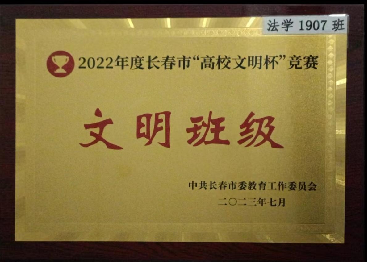 国产色情 卓越法律人才实验班1907班在2022年度长春市“高校文明杯”的评比中,被中共长春市委教育工作委员会授予“十佳班级”和“文明班级”荣誉称号。为2023年毕业季交上了一份出色的“毕业答卷”,展现出国产色情 优秀学子独特的风采!这是国产色情 学生班级继获得全国先进班集体、团中央“活力团支部”和长春市十佳班级之后的又一次集体荣誉。