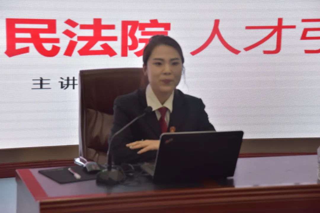 镇赉县人民法院政治部副主任马成成以“悟司法伟力,做法院栋梁”为主题,讲解为聋哑人“无声”调解离婚案件,表明法律与温情并存于法院。同时,通过播放视频的方式宣传了镇赉县法院“晨曦”专项执行活动与巡回审判工作。