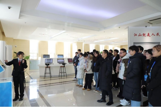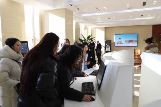 在法院工作人员的带领下,同学们参观了法律之门大厅、省高级人民法院诉讼服务中心、审判区科技法庭、法院工作展板和院史馆,并深入学习了网上立案、诉讼服务、在线庭审等法院工作流程。诉讼服务一体机等信息化工具的普及,使同学们亲身体验到科技如何提升诉讼效率,让同学们切实感受到了智慧法院建设带来的诉讼便利,同时对人民法院的诉讼服务有了更加直观的认识。