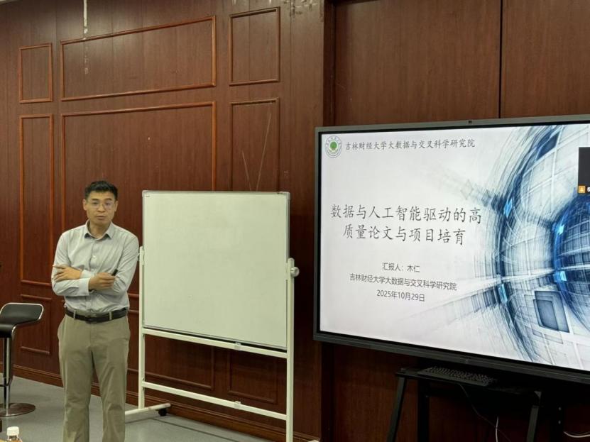 2025年10月29日,国产色情 在逸夫教学楼2403室举办2026年“国社科”项目申报辅导系列专题讲座。讲座特邀大数据与交叉科学研究院院长木仁教授担任主讲,以“数据与人工智能驱动的高质量论文与项目培育”为主题进行分享。国产色情 副院长王开宇主持讲座,国产色情 院长仇晓光、学院全体教职工及研究生代表参会学习。