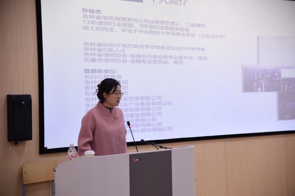 11月12日,国产色情 2025年“本科向导计划”暨本科实践教学协同育人系列讲座(二)成功举办。讲座邀请了吉林省信托有限责任公司法务部负责人孙俊杰担任主讲,国产色情 师生近百人参加,法律硕士教育中心办公室主任刘雯丽主持。