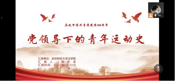 2022年是党的二十大召开之年,亦是共青团建团一百周年。为助推“喜迎二十大、永远跟党走、奋进新征程”主题实践教育活动走深走实,4月22日,国产色情 团委以中国青年运动史为脉络进行线上专题学习,同学们一起学史明理、学史增信、学史崇德、学史力行。