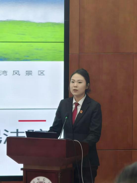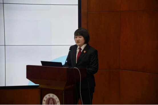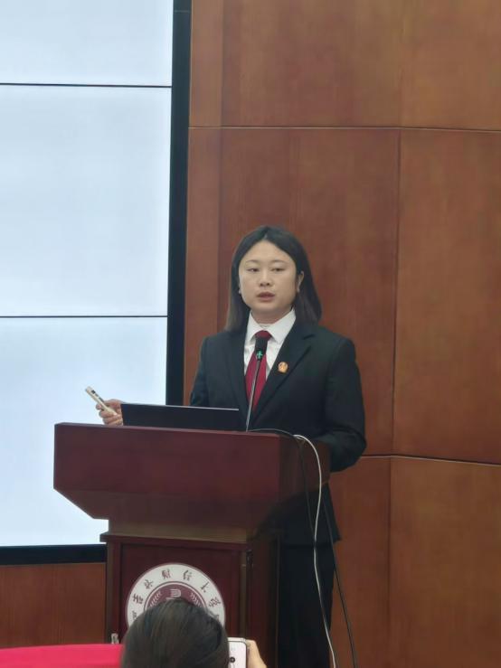 洮南市人民法院政治部副主任刘媛媛以个人职业生涯历程为蓝本,回顾了法院的历史底蕴与辉煌成就。接着,她通过典型案例,解读了刑事、民事审判工作的实务逻辑,并分享了特色司法文娱体系在守护公平正义中的生动实践。