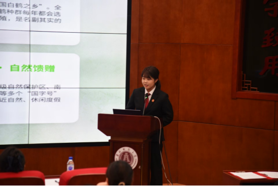 推介会伊始,白城市中级人民法院干部处处长陈丽美进行了发言,她结合白城本地实际,从区域发展现状出发,细致讲解了当地显著的区位条件与深厚的人文底蕴。在此基础上,她以白城市中级人民法院的发展历程为依托,介绍了法院完备的人才培育体系、齐全的硬件设施与优质的工作氛围,并向在场学子发出诚挚邀约,鼓励大家选择白城法院,在司法岗位上施展抱负、成就自我、开创未来。