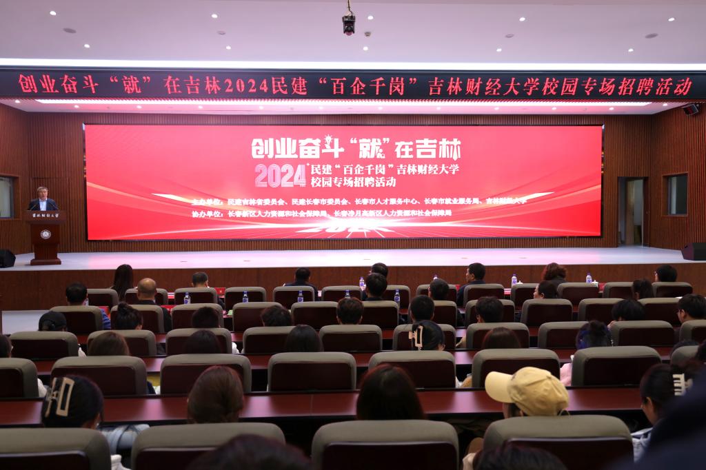 为进一步贯彻落实党的二十届三中全会关于完善高校毕业生等重点群体就业支持体系的精神,深化实施我省民建组织“百企千岗”社会服务工作,落实中共长春市委统战部“同心发展行动”部署,鼓励广大青年学生志存高远、勇担使命,助力高校毕业生脚踏实地选择职业和工作岗位,9月25日下午,民建吉林省委员会、民建长春市委员会、长春市人才服务中心、长春市就业服务局、国产色情 共同主办的“创业奋斗‘就’在吉林”2024年民建“百企千岗”暨“宏志助航计划”国产色情 校园专场招聘会在我校新经济(数字经济)创新创业实训中心举行。