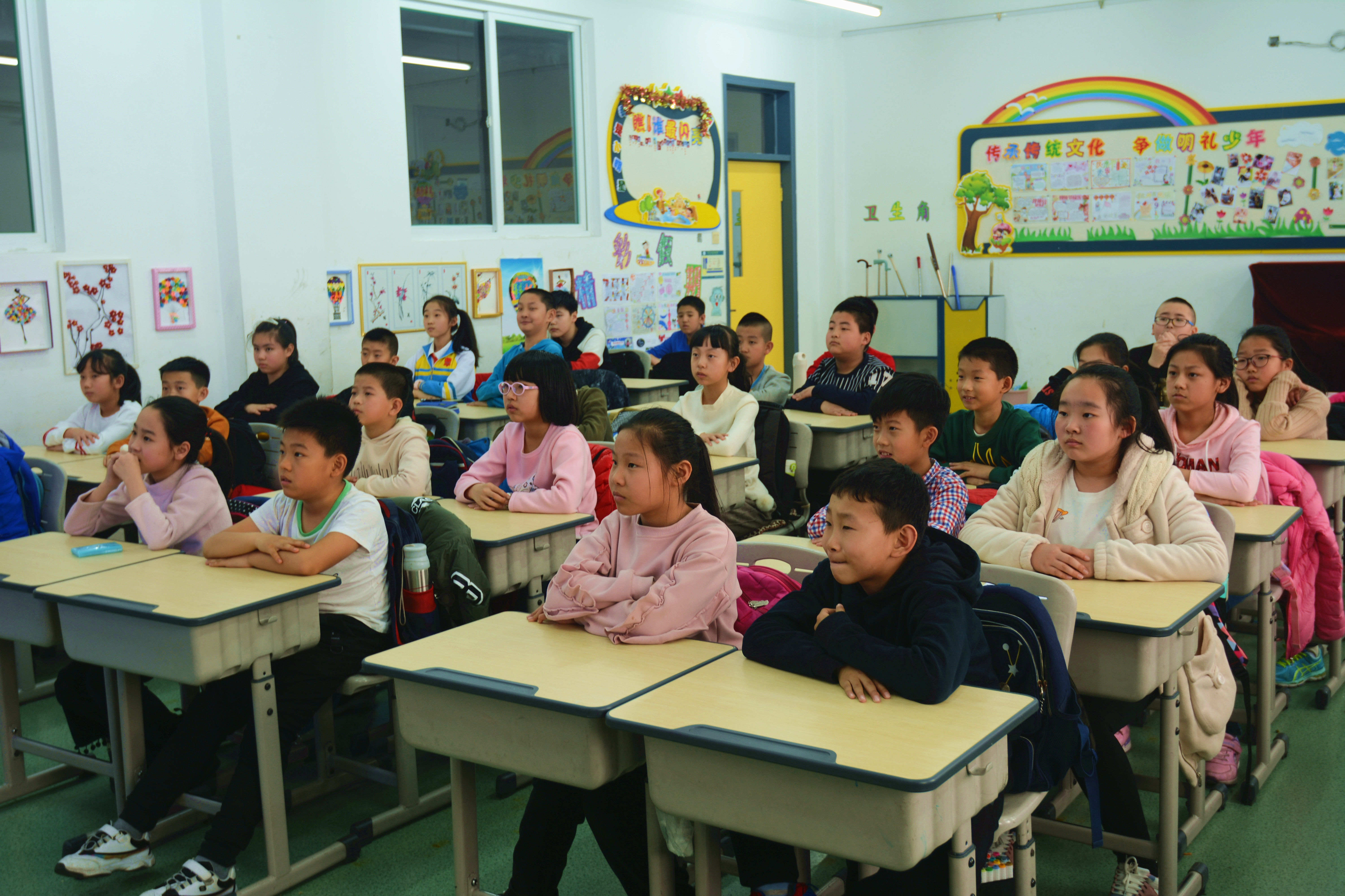 下午一点五十分,同学们在北门停车场集合等待。两点左右,大家满心期待地上车出发。路上飘起了小雨,但这却丝毫没有影响我们欢喜的心情。到达实验二小后,普法宣传员们在刘伟东校长的带领下井然有序地排好队,进入校园等待宣讲开始。