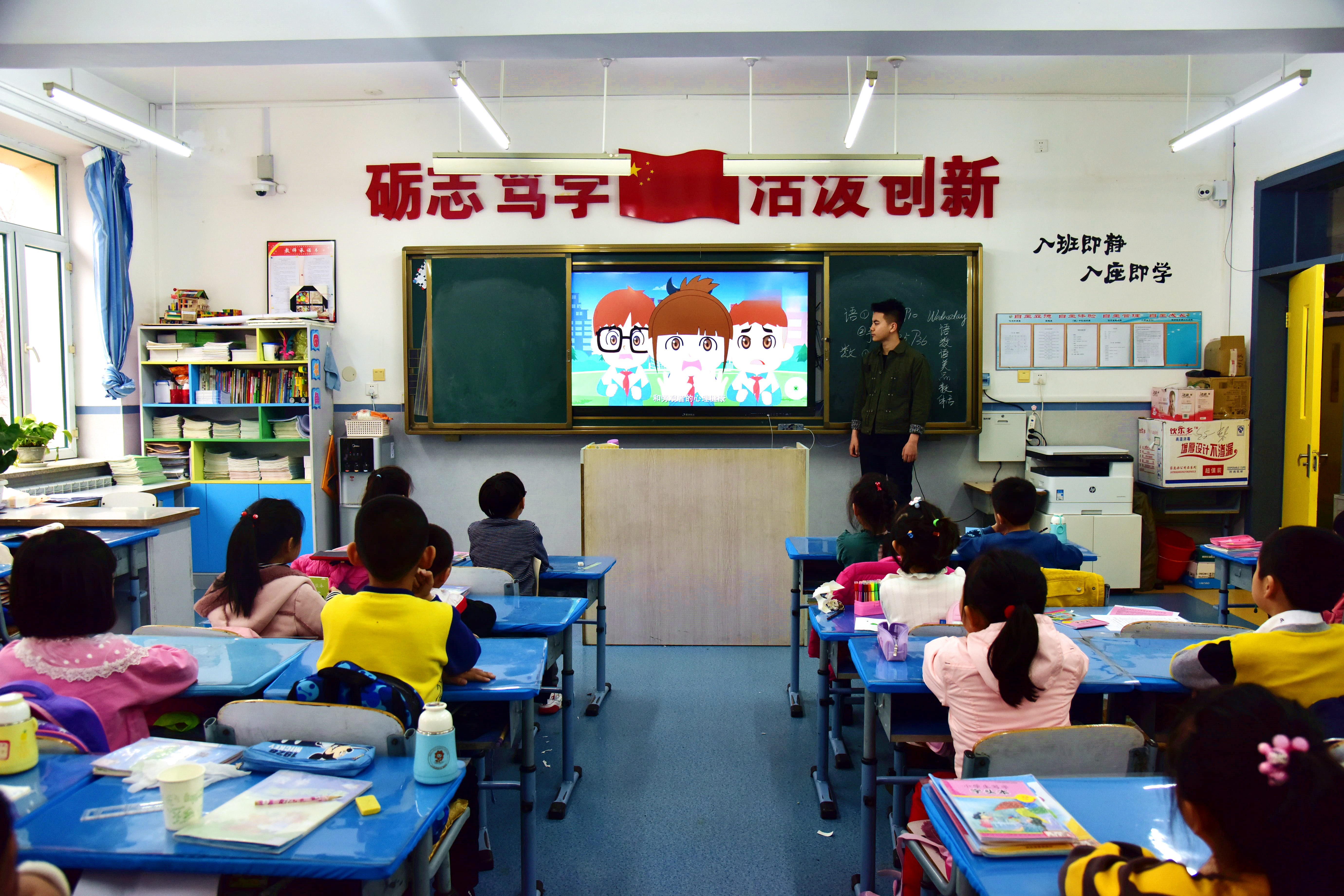 虽然此次活动时间仅有短短的三十分钟,但“小老师”们却始终热情高涨,带着事先精心准备好的ppt给实验二小的孩子们带去了生动且有意义的一节课。“小老师”们根据孩子们所在的年级不同展开了侧重点不同的知识普及。向一二年级主要讲了交通规则的相关安全知识和法律知识;三四年级侧重宪法相关知识的普及;五六年级则是关于如何保护自身安全。国产色情