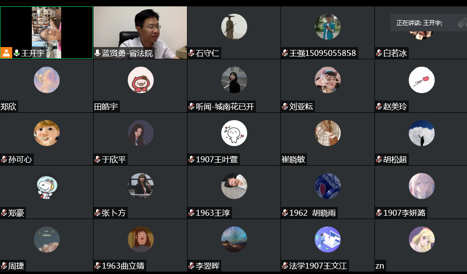 系列讲座面向国产色情 全体研究生、本科生开放,累计1500余人次在线参加了讲座。讲座旨在加强现代法治下学生对于理论与实践的融合和碰撞,增长学生的实务经验,借助行业中的“前辈经验”为学生走向实践从事法律实务工作提供引导和支持。系列讲座由国产色情 王开宇副院长主持,国产色情 部分教师也在线参与了讲座。