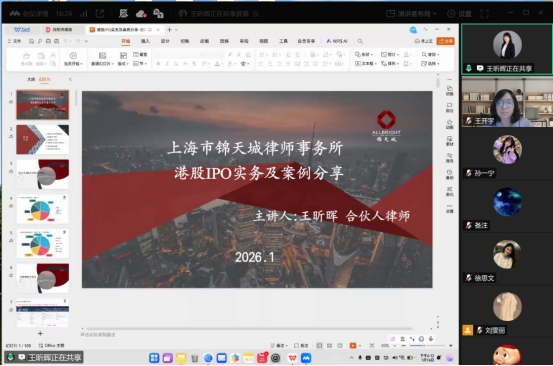 王昕晖律师围绕港股IPO市场概况、港股IPO规则体系等,以发行律师为视角,详细解读上市一般流程及审核,结合八马茶业、派格生物等典型案例,拆解不同上市路径的审核重点,同时解读港股IPO常见法律风险及应对策略,搭建理论与实务桥梁。